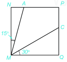 Cho hình vuông MNPQ và số đo các góc ghi tương ứng như trên hình sau: