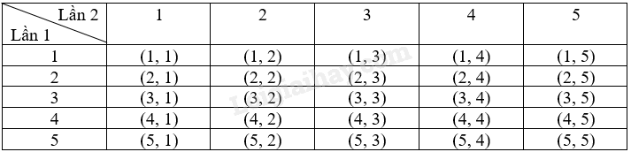 Ta liệt kê được tất cả các kết quả có thể của phép thử bằng cách lập bảng như sau: