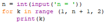 Viết chương trình nhập vào số nguyên n và in ra các số nguyên dương lẻ không lớn hơn n theo thứ tự tăng dần.