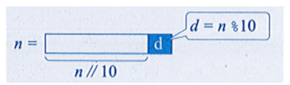 - Để loại bỏ chữ số hàng đơn vị của n ta có thể gán n //= 10.