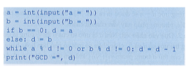 - Kết thúc: Giá trị a sau vòng lặp là ước chung lớn nhất của hai số ban đầu. Tham khảo chương trình sau: