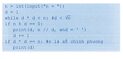 Lưu ý: Trường hợp (n là số chính phương), ta chỉ được in ra một ước để tránh trùng lặp.