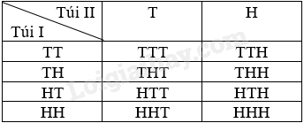 Ta có bảng mô tả không gian mẫu: