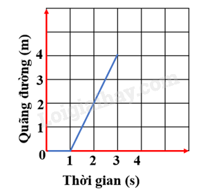 Trong một giây đầu tiên một vật đứng yên tại một vị trí. Trong 2 giây tiếp theo vật đi được 4 m trên một đường thẳng. Vẽ đồ thị quãng đường - thời gian của vật trong khoảng thời gian trên. |