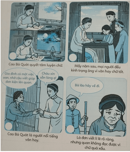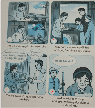 Em hãy đánh số thứ tự theo các tranh theo trình tự câu chuyện Văn hay chữ tốt và kể lại câu chuyện.