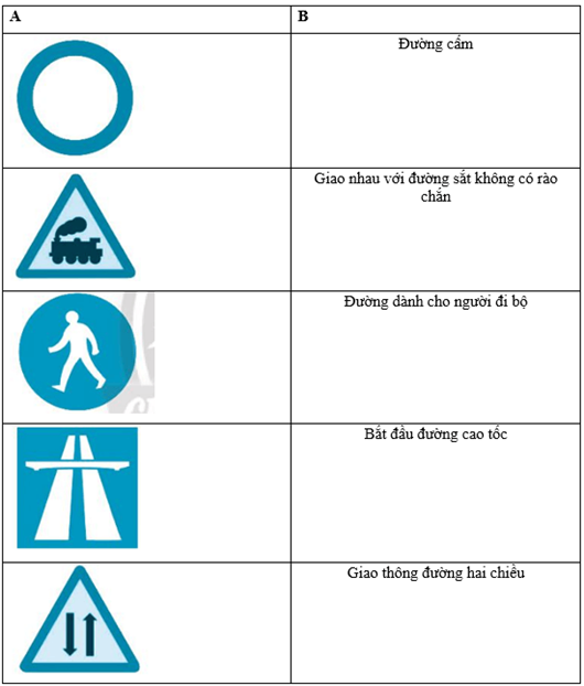 Em hãy nối hình biển báo ở cột A với ý nghĩa ở cột B sao cho đúng.