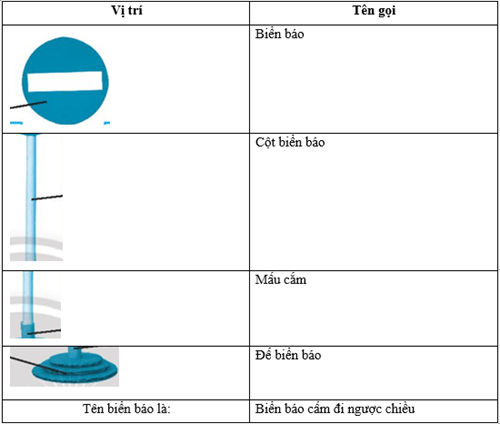 Em hãy ghi tên các bộ phận của mô hình biển báo giao thông đường bộ trong hình dưới đây và cho biết tên gọi của biển báo.