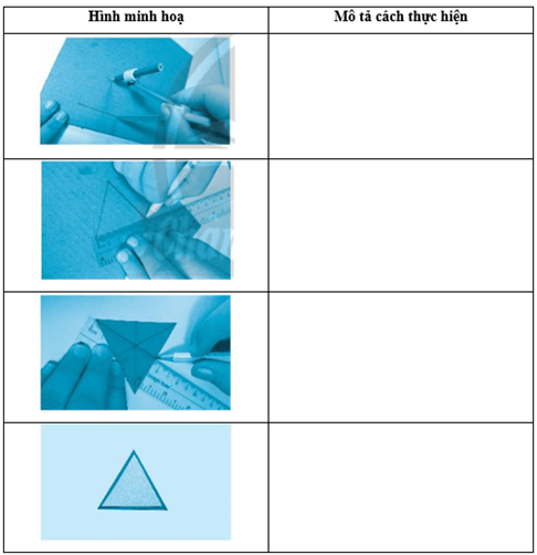 Em hãy mô tả cách vẽ và dán dạng biển báo nguy hiểm (hình tam giác có 3 cạnh bằng nhau) theo hình minh hoạ dưới đây.