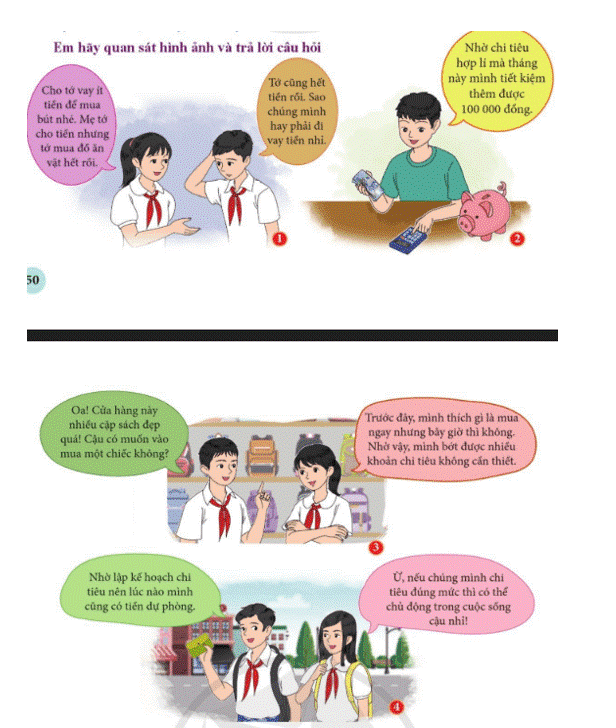 + Tranh số 4: cả 2 bạn học sinh trong bức tranh đều biết chi tiêu hợp lí.