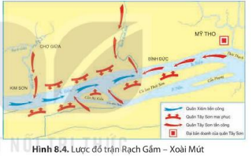 1. Quan sát lược đồ hình 8.4 và cho biết vì sao Nguyễn Huệ chọn khúc sông từ Rạch Gầm đến Xoài Mút làm trận địa quyết chiến?