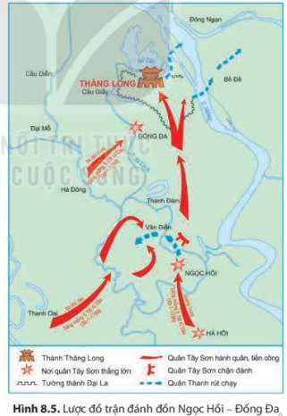 Khai thác hình 8.5, 8.6, hãy mô tả trận đại phá quân Thanh xâm lược năm 1789 của quân Tây Sơn.