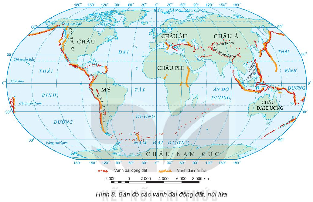 Vành đai động đất không có ở nơi nào sau đây? Vành đai núi lửa không có ở nơi nào sau đây? Các vành đai động đất núi lửa thường nằm ở. Dựa vào hình 8 và hình 6.2 SGK, cho biết ở bờ Tây Thái Bình Dương, vành đai động đất, núi lửa hình thành do sự tiếp xúc của mảng kiến tạo nào? Dựa vào hình 8 và hình 6.2 SGK, cho biết vành đai động đất, núi lửa ở bờ Đông Thái Bình Dương nằm ở nơi sự tiếp xúc của mảng kiến tạo nào?Dựa vào hình 8, em hãy xác định các vành đai động đất, vành đai núi lửa trên thế giớ