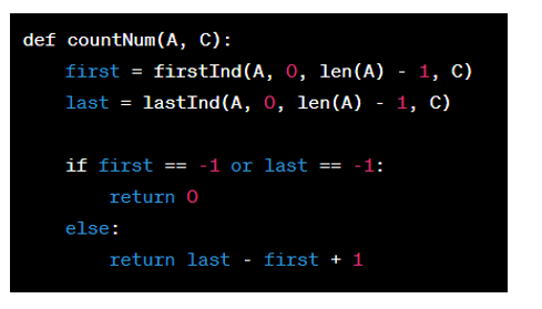 - Ta có thể sử dụng hàm firstInd và lastInd đã thiết kế để giải quyết bài toán tìm số lần xuất hiện của một số trong một dãy số.