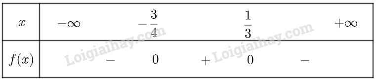 Vậy tam thức đã cho có dạng là \(f\left( x \right) = - 12{x^2} - 5x + 3\) dương trên khoảng \(\left( { - \frac{3}{4};\frac{1}{3}} \right)\), âm trên khoảng \(\left( { - \infty ; - \frac{3}{4}} \right)\) và \(\left( {\frac{1}{3}; + \infty } \right)\)