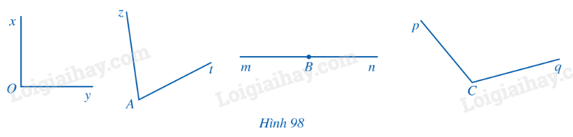 Đo các góc trong Hình 98 và chỉ ra góc nhọn, góc vuông, góc tù, góc bẹt.