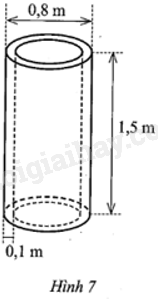Bác An cần đúc một ống cống thoát nước bằng bê tông có dạng hình trụ rỗng với đường kính đường tròn đáy ngoài là 0,8 m, chiều dài ống là 1,5 m và bề dày là 0,1 m (Hình 7).