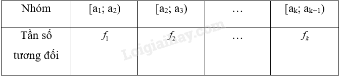 Bảng tần số tương đối ghép nhóm có dạng: