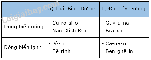 Dựa vào hình 3 SGK (trang 166), em hãy kể tên hai dòng biển nóng và hai dòng biển lạnh ở: