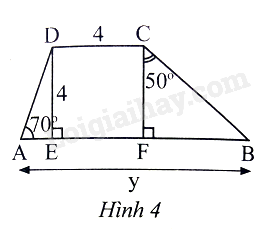 Độ dài y trong Hình 4 (kết quả làm tròn đến hàng phần mười) là