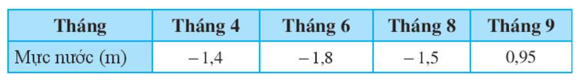 Mực nước trong một cái ao so với mặt đất đo được trong các tháng được cho bởi bảng sau: