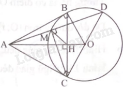 Từ điểm A nằm ngoài đường tròn (O), vẽ hai tiếp tuyến AB, AC của đường tròn (O) (B, C là tiếp điểm). Kẻ đường kính CD của đường tròn (O), đường thẳng AD cắt đường tròn (O) tại điểm thứ hai là M. Gọi H là giao điểm của AO và BC. Chứng minh (widehat {AHC} = {90^o}) và tứ giác AMHC nội tiếp đường tròn.