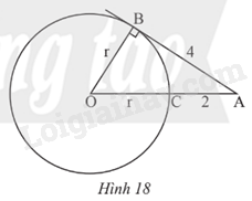 Trong Hình 18, AB là tiếp tuyến của đường tròn (O) tại B.