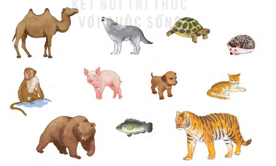 - Em quan sát kĩ hình minh họa và gọi tên các con vật có trong hình