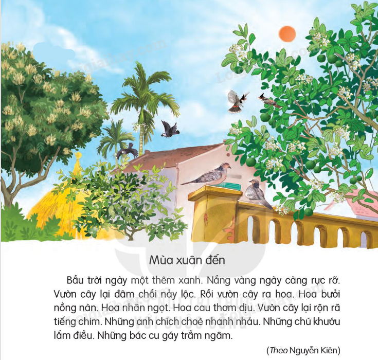 Em đọc kĩ bài đọc Mùa xuân đến và dựa vào mẫu để tìm các tiếng có cùng vần với nhau