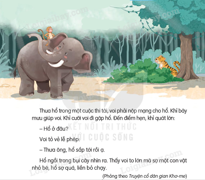 a. Voi phải nộp mạng cho hổ vì voi đã thua hổ trong một cuộc thi tài