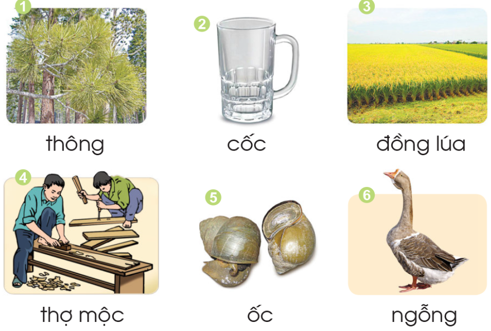 Tiếng có vần ôc là: cốc, mộc, ốc.