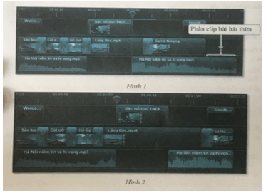 Hãy sắp xếp các việc dưới đây theo thứ tự hợp lí để thực hiện lồng ghép video Bác Hồ đọc Tuyên ngôn độc lập lên trên clip Lăng Bác.