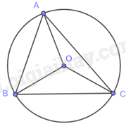 Vì góc nội tiếp BAC và góc ở tâm BOC cùng chắn cung nhỏ BC nên \(\widehat {BAC} = \frac{1}{2}\widehat {BOC} = \frac{1}{2}{.120^o} = {60^o}\)