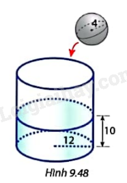 Một chiếc cốc hình trụ có phần đáy bên trong là một hình tròn bán kính bằng 12 cm. Chiều cao của mực nước trong cốc là 10 cm (Hình 9.48).