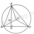 + Gọi D là chân đường cao hạ từ đỉnh A của tam giác ABC. Suy ra \(\widehat {BAH} = \widehat {BAD} = {90^o} - \widehat {ABD}\). Do đó, \(\widehat {BAH} = \widehat {OAC}\).