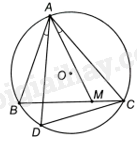 Chứng minh \(\widehat {ABM} = \widehat {ADC}\), \(\widehat {BAM} = \widehat {DAC}\), suy ra $\Delta AMB\backsim \Delta ACD$ (g. g).