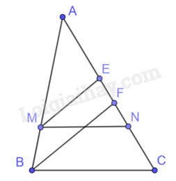 Mà ME, BF lần lượt là phân giác của các góc M, B của các tam giác AMN và tam giác ABC nên \(\widehat {EMN} = \frac{1}{2}\widehat {AMN} = \frac{1}{2}\widehat {ABC} = \widehat {FBC}\)
