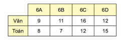 Vẽ biểu đồ cột kép biểu diễn bảng thống kê số lượng học sinh đạt điểm giỏi môn Văn và Toán của các lớp khối 6.