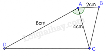 \(\widehat {BAC} = \widehat {DAC}\) (vì AC là tia phân giác của góc DAB), \(\frac{{AB}}{{AC}} = \frac{{AC}}{{AD}}\left( {do\frac{2}{4} = \frac{4}{8}} \right)\)