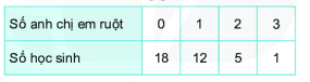 Bảng sau cho biết số anh chị em ruột trong gia đình của 35 học sinh lớp 6A.