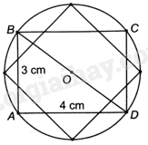 Cho hình chữ nhật ABCD nội tiếp đường tròn (O) với AB=3cm; AD=4cm. Vẽ một hình vuông nội tiếp (O). Tính diện tích của hình vuông đó.