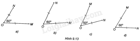 Hình nào dưới đây vẽ hai điểm M, N thỏa mãn phép quay ngược chiều \({60^o}\) tâm O biến N thành M?