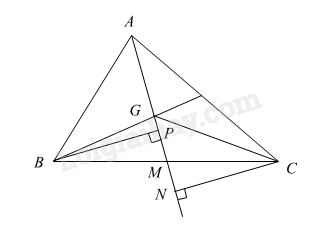 Mà \({S_{GAB}} = \dfrac{1}{2}BP.AG\), \({S_{GAC}} = \dfrac{1}{2}CN.AG\)