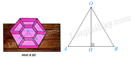 Suy ra \({S_{\Delta AOB}} = \frac{{OH.AB}}{2} = \frac{{\frac{{\sqrt 3 }}{2}x.x}}{2} = \frac{{{x^2}\sqrt 3 }}{4}\left( {c{m^2}} \right)\)