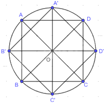 a) Phép quay thuận chiều ({45^o}) tâm O biến các điểm A, B, C, D lần lượt thành các điểm A’, B’, C’, D’ (H.9.61). Hãy vẽ tứ giác A’B’C’D’.