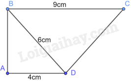 Cho tứ giác ABCD như Hình 9.11. Biết rằng \(\widehat {BAD} = \widehat {BDC} = {90^0},AD = 4cm,BD = 6cm\) và \(BC = 9cm.\) Chứng minh rằng BC//AD.