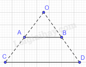 Trên tia OA, OB lần lượt lấy điểm C, D sao cho \(OC = 2OA,\;OD = 2OB.\) Nối C với D ta được đoạn thẳng CD là hình đồng dạng phối cảnh của đoạn thẳng AB với tâm phối cảnh là điểm O và tỉ số đồng dạng bằng 2.