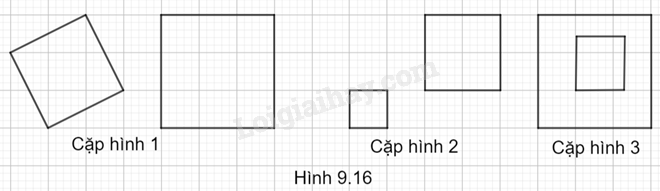 Những cặp hình vuông nào dưới đây (H.9.16) là hình đồng dạng phối cảnh?