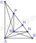 \(\widehat {ACP} = \widehat {MAB}\left( { = {{90}^0} - \widehat {CAH}} \right),\frac{{AB}}{{AC}} = \frac{{AM}}{{CP}}\left( {cmt} \right)\)