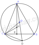 + Gọi AD là đường kính đường tròn (O). Chứng minh tam giác ADC vuông tại C nên \(\widehat {OAC} + \widehat D = {90^o}\left( 2 \right)\)