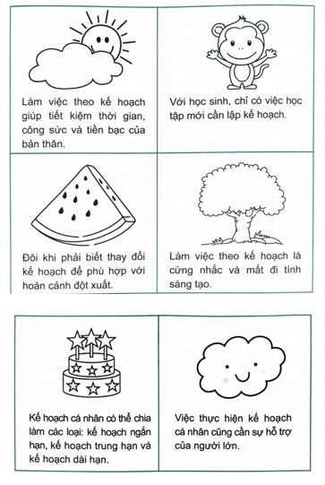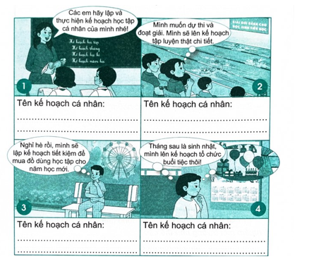 Quan sát tranh và nêu loại kế hoạch cá nhân dưới mỗi tranh.
